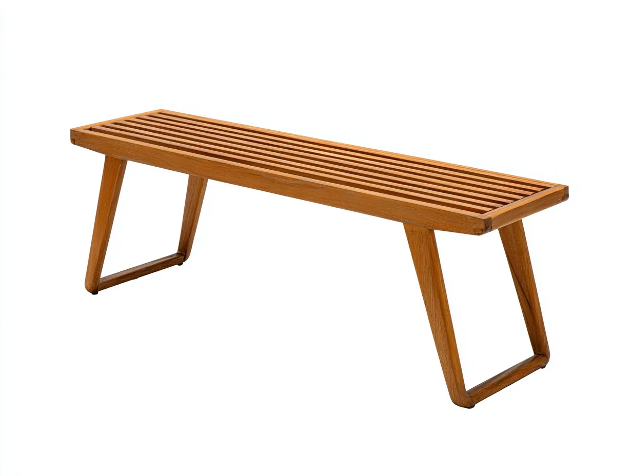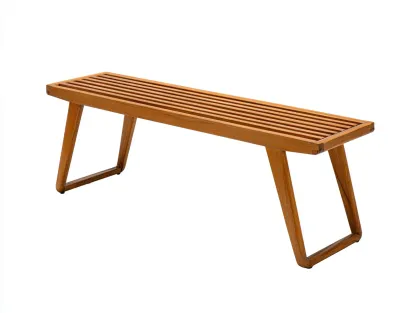 Banco de jardín diseñado para uso exterior que presenta una estructura alargada y líneas limpias. Su formato abierto facilita la circulación del aire y aporta una presencia ligera y funcional en espacios de jardín.