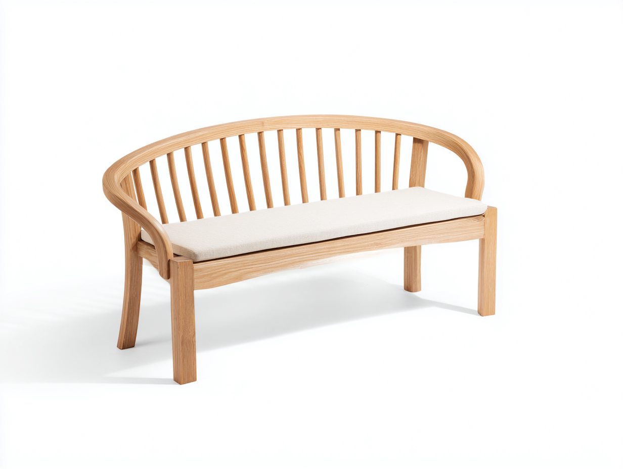 Bancos de jardín de madera con asiento acolchado 120x45x85 cm - madera natural-beige - diseño moderno para exterior