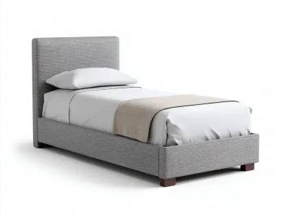 Cama individual de diseño moderno pensada para dormitorios individuales y espacios funcionales. Su estética sobria con cabecero tapizado aporta una sensación acogedora y ordenada, adecuada para un uso diario cómodo.